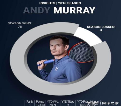穆雷 2016赛季,胜率89.7%,夺得奥运金牌,2016年是他红土成绩最好的一个赛季。